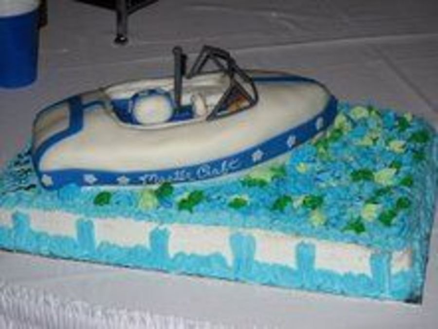 Groom's cake for a friend. They got married on the lake and drove off in their boat.