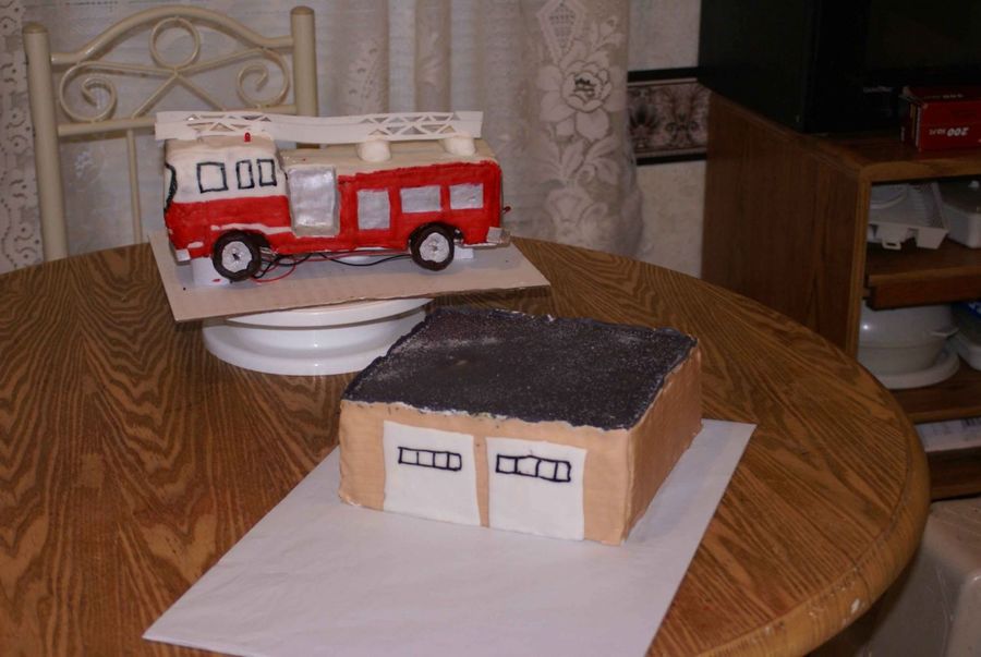I did this cake for our local Fire Station for appreciation of their service. I delivered it on thanksgiving 2007. The lights on the truck actually work and flash, hence the wires under the cake.