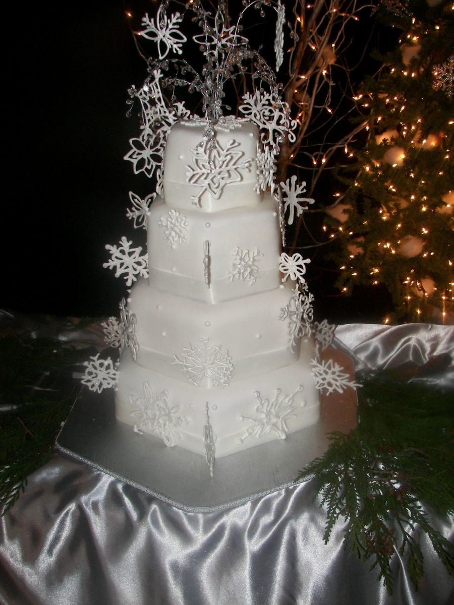 This cake was four different flavors of cake, all with cream cheese icing. First time making snowflakes, they sure are fragile. Thanks for looking
