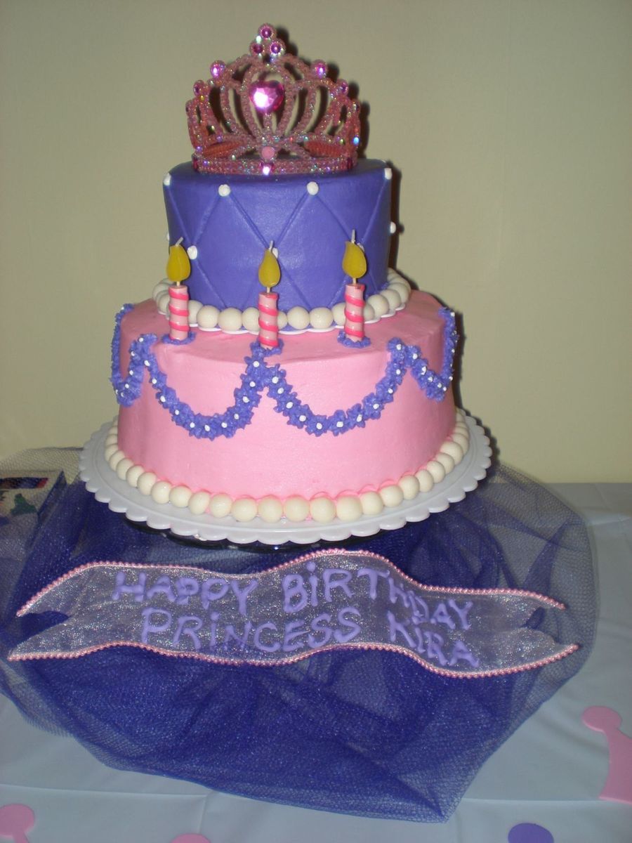 all buttercream! pearls are marshmallow fondant rolled in shimmer dust. this cake was made for my neighbor's 3rd birthday. she is all about princesses, tiaras and anything "girly". cake is actually pink and purple (not blue, like it looks in the picture) this was my first "quilt" job also.