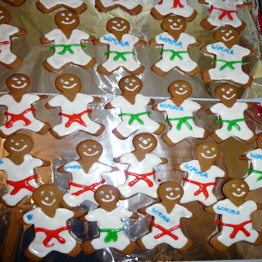 Gingerbread cookies I made for my sons' karate classes.