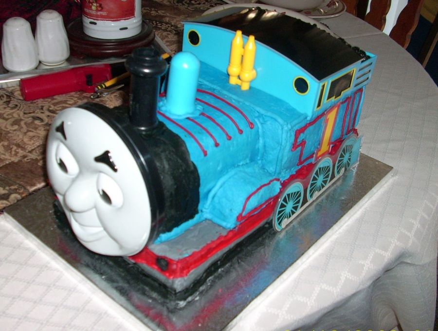 I made this for my coworker's son's first birthday. They had the Thomas parts and had me make and decorate the cake. Chocolate cake and buttercream. They seemed pretty please with it when I dropped it off - of course I'm sure it was more for them as their son is only one and didn't even know it existed. : ) Thanks for looking!