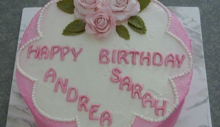 For a lady who took early retirement-chocolate cake with cheesecake mousse filling and buttercream icing. The decorations are scrapbook embellishments on fondant plaques.