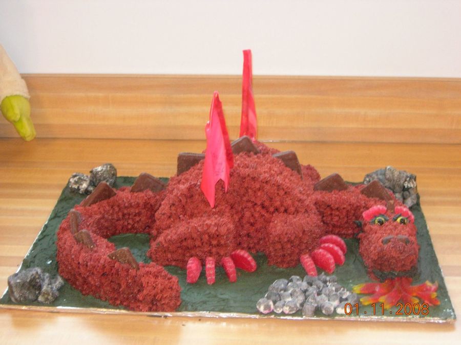 this is a cake that I made for my son's 4th birthday.. He absolutely loves shrek and wanted a dragon cake to go along with the theme.. I had fun doing it....