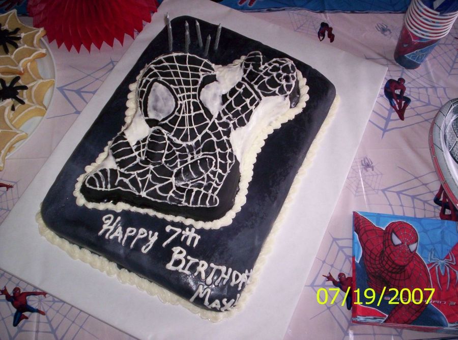 snowshoe1 on 16 Jan 2008 , 7:23pm Wow - a 3D black and white spiderman cake. I love it - very creative and unique. Great work - looks like alot of work piping those detailed lines.