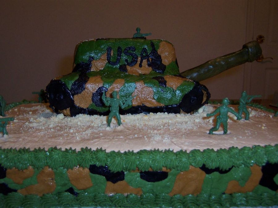 Great techniques to make this cake (thanks for sharing how you did this!). Your camo turned out wonderful - looks like alot of work.