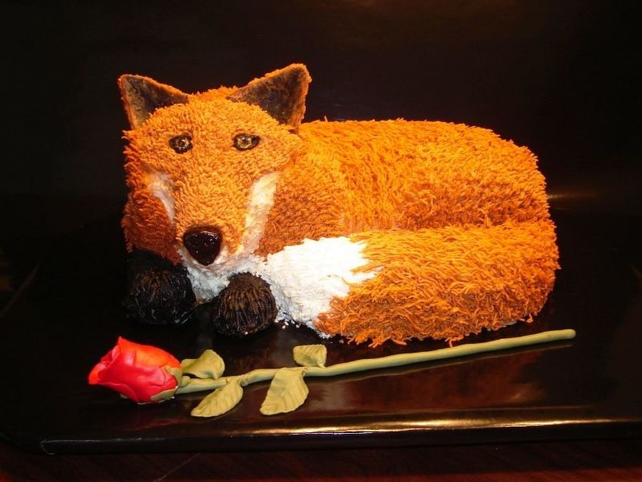 Well I finally did it! Carved a FOX. Started with two 9x13 layers and a cupcake made in the mini ball pan. It was fun but so stressful because it was to be displayed at an International Hunter Jumper Association dinner for 1000. Used a sour cream pound cake recipe so it would be sturdy. All buttercream except for MMF/Gumpaste ears and nose. It was the hit of the dinner Only about 40 people were lucky enough to get a slice. P.S. Thanks to several of you CCers for input in helping with this project.