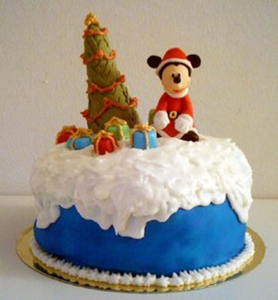Covered panettone with fondant and RI. Fondant is airbrushed and mickey/tree is made from fondant with cmc