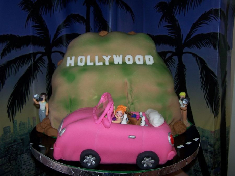 Hi guys! This cake was for my niece Sabrina's birthday - she had a "red carpet" themed party and I did this cake for her. It's Sabrina, off to Hollywood in her little pink convertible - complete with the hollywood hills in the background! Shell was with me on this one, too!!!