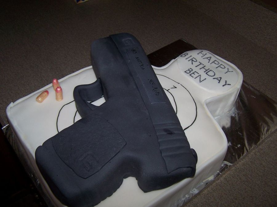 lilacc01 on 24 Jan 2008 , 7:43pm How adorable! I go to the range often, I would be THRILLED to recieve this cake!(With one of my guns on it, that is, instead of a glock) Kudos!