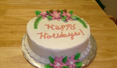 Merry Christmas Cake With Holly And Poinsettas