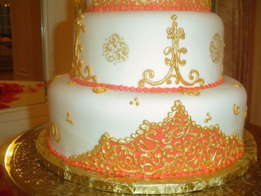 Such ornate detail. I bet painting all of that was very tedious. Kudos for not getting any of the gold on the white fondant.