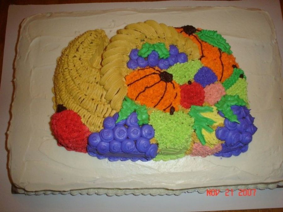 I made this cake for a family gathering of over 40 people...the sheet cake is pumpkin spice with cream cheese icing., Yum!