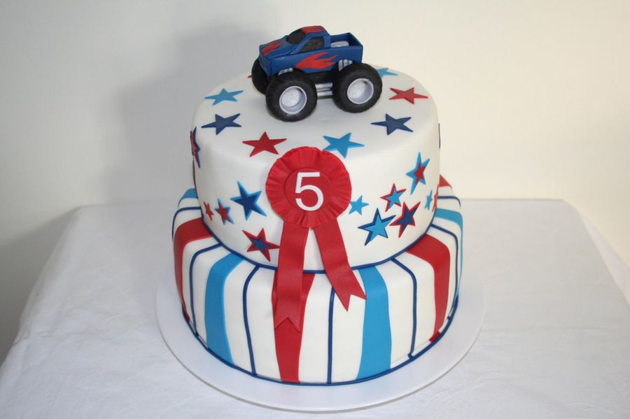 I made this cake for my son's 5th birthday. He adores monsterjam. I made this monsterjam from modellingpaste.
