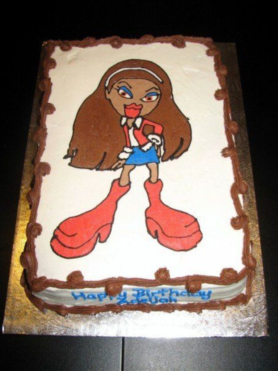 My litte mermaid cake was such a hit that the mother asked me to make a Bratz cake for her other daughter. It's all buttercream with FBCT.