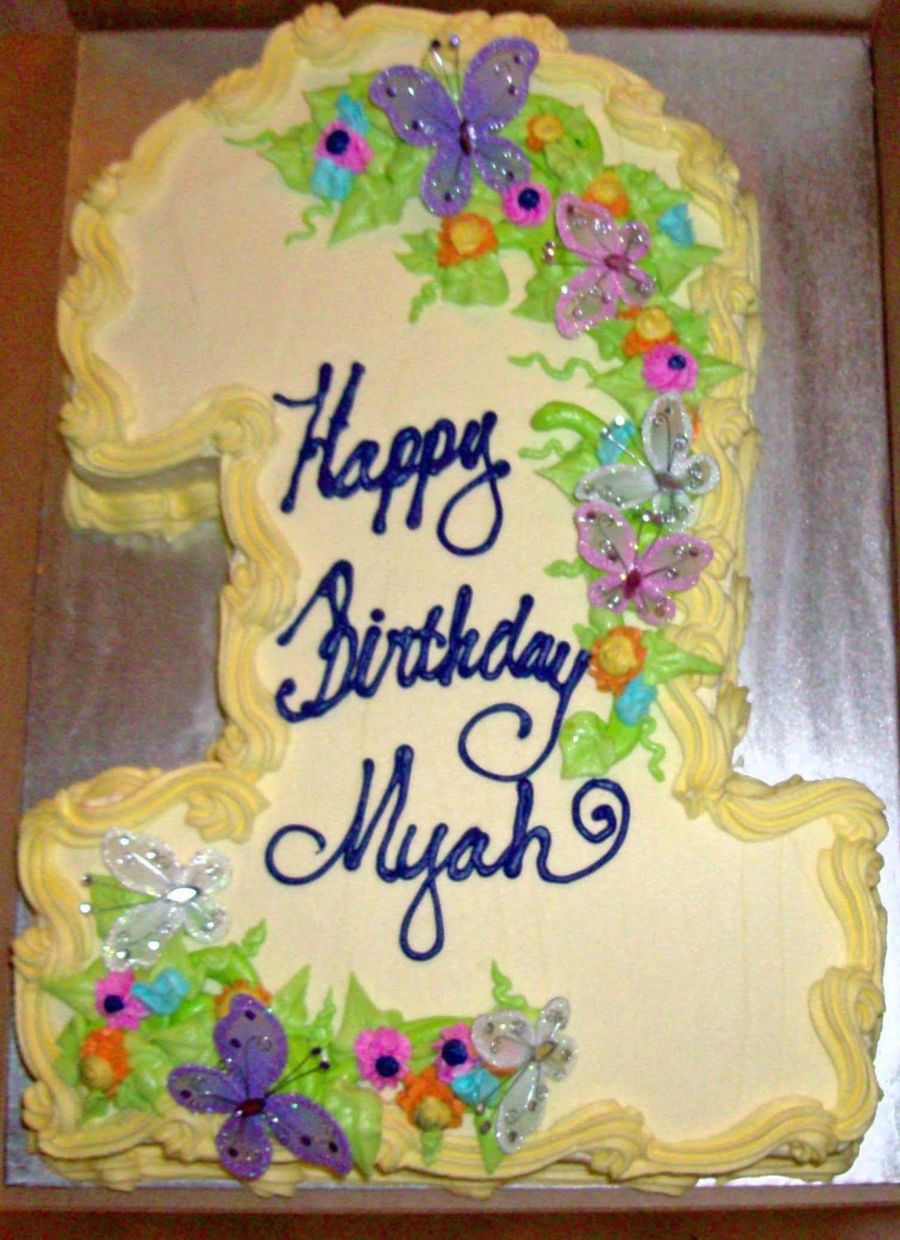 First Birthday cake. I used a 12x18, butterflies were purchasd from a local craft store. my version of a cake done by Freeds Bakery in Vegas