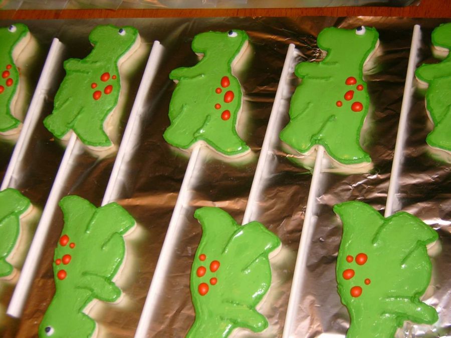 These went with a T-Rex cake for a 5th birthday. They are NFSC iced in royal.