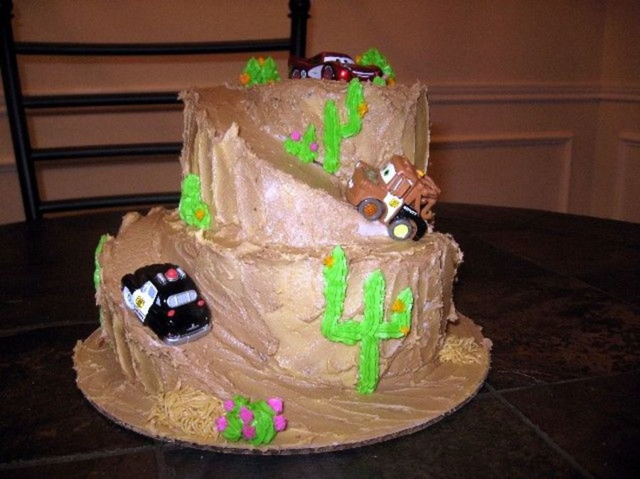 This was my 11 yr. olds cake it was last min. I was done by 5 and the party started at 6. Buttercream and real cars.