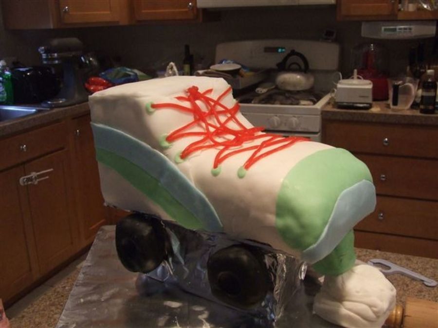 This is a cake I did for a friend at work. I carved an 11x15 then frosted and covered in MMF. I used Rice Krispy Treats for the wheels and stopper. I was in such a rush that the picture I took still has the glob of MMF holding up the stopper :( Oh well I'll edit it later. Thanks to Doug for your stand diagram.