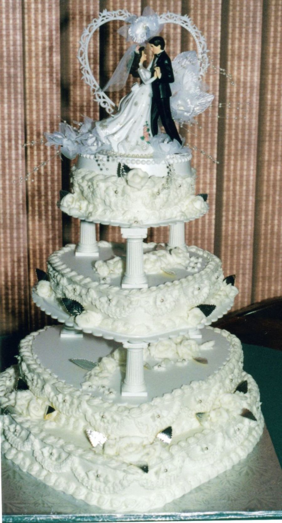 Heart Shape - All Buttercream - White Roses with Silver Leaves