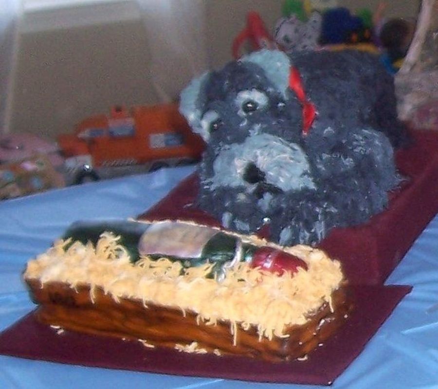 My father-in-law's 90th birthday cakes. Dog is all cake. Crate is cake, bottle is rice krispies. Sadly my FIL suffers from short term memory loss. He loved the cakes & tried to remove the wine bottle but 20 minutes after it was cut he had no memory of the cake or his 2 sisters being at the party. But while in the moment..he loved all the attention. Every time I talk to him he asks me "When are you going to make me one of your fancy cakes?"