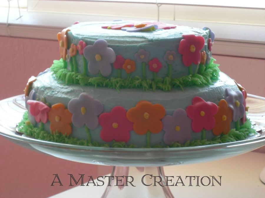 First 2 tiered cake. For my daughter's birthday party in her class. inspired by picture in wilton book.