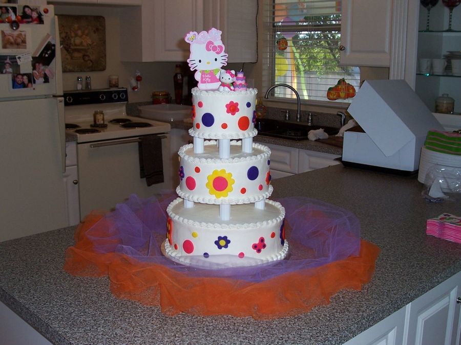 I particullarly don't care for the columns (that's just my taste), but the cake itself is iced perfectly! The fondant flowers make it look soo girly and cute. Nice, clean and sharp cake. Great job!