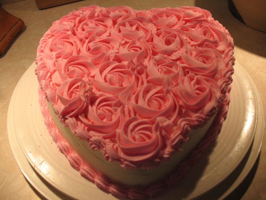 This is a 9" heart (french vanilla) with BC icing and covered in BC rosettes. For a coworker's daughter's daycare party. She wanted simple and pretty...I liked it :) It was a very last minute order!!! Inspiration from CCer's cakes, thanks!
