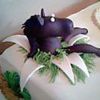 This cake had to repaired due to a wreck when delivering. I knew better than to set it on the car seat. I had to slam on brakes as a car about 10 cars ahead hit the guardrail. The cake hit the floor and split. Most of the deco had to be repaired.