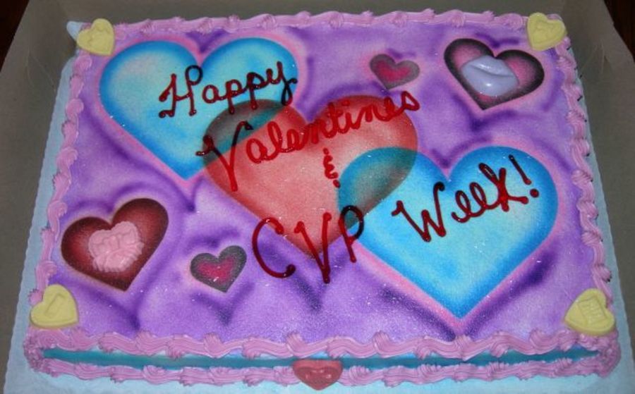 I did several Valentines Day themed caked in one night, so the next couple of cakes i post on here are similar, I airbrushed the hearts and decorations then wrote with gel, then I sprinkled edible glitter all over them, I love that stuff!!