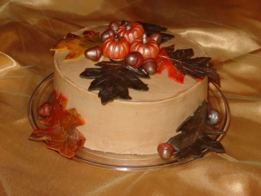 I made this cake before taking the Wilton Cake Courses. It is Martha Stewarts Caramelized-Apple Spice Cake. The decorations were made with Marizpan.