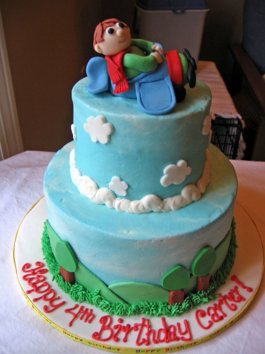 Very cute! I love how you used fondant for the sides but bc for the grass/cloud borders - it adds a really nice dimension. Your little plane is awesome!