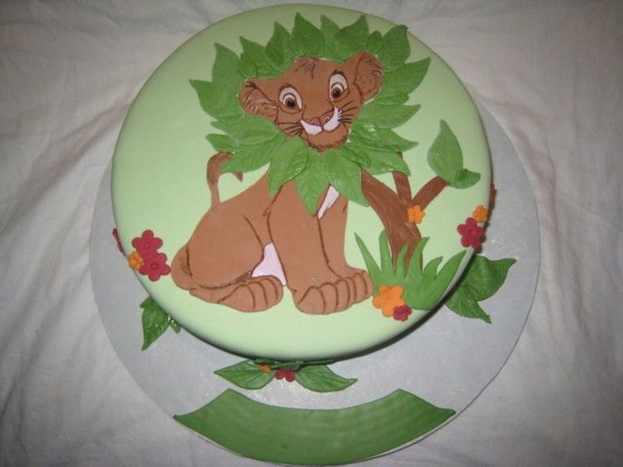 wendy1273 on 21 Feb 2008 , 4:50am Laly, I printed simba from the internet and cut it out than I took fondant and cut out the simba and went on top of the lines with a brush and brown paint. I made the leafs and placed them around simba's head