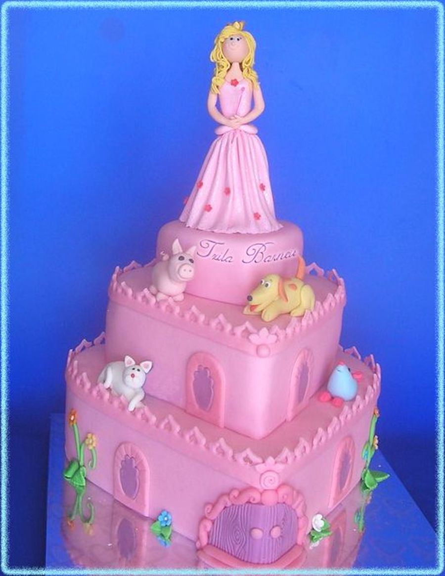 This is the third year in a row that I get an order for a pink princess cake for the same girl! This time I was requested to make a three-tier pink castle in the shape of a heart.