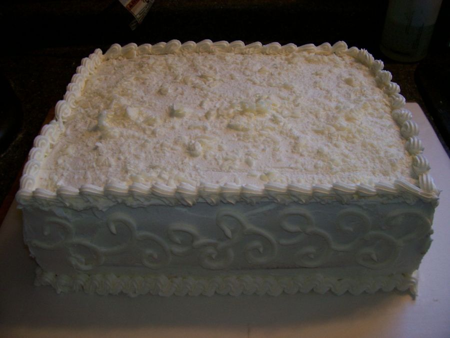 This is an Almond Sour Cream cake with Black Raspberry Filling and White Chocolate Cheesecake Buttercream.