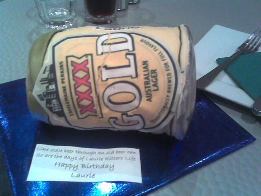Beer can for my uncle. He has lots of these cans in his yard as he collects and recycles them (and also drinks them). It's not what I wanted but stuff happens. The lable said "Like old stale beer through a beer can, so too are the days of 'my uncles name' life" He didn't cut it. I think he's taking it home to freeze it for ever. Oh well just glad he liked it.
