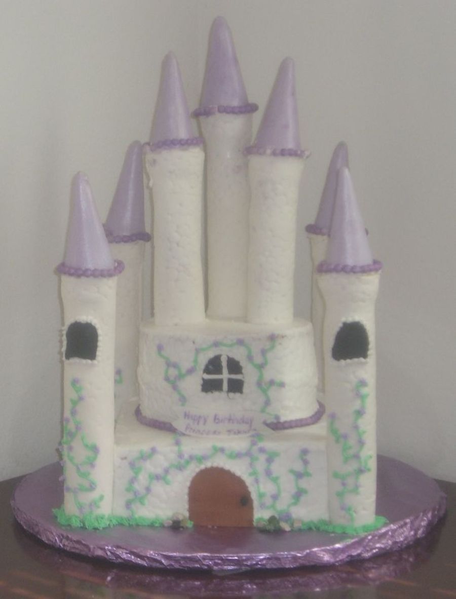 This was for my daughter's 3rd birthday. She is my little princess so I had to make her a castle cake. This was a lot harder than I thought it would be. Buttercream frosting and fondant accents