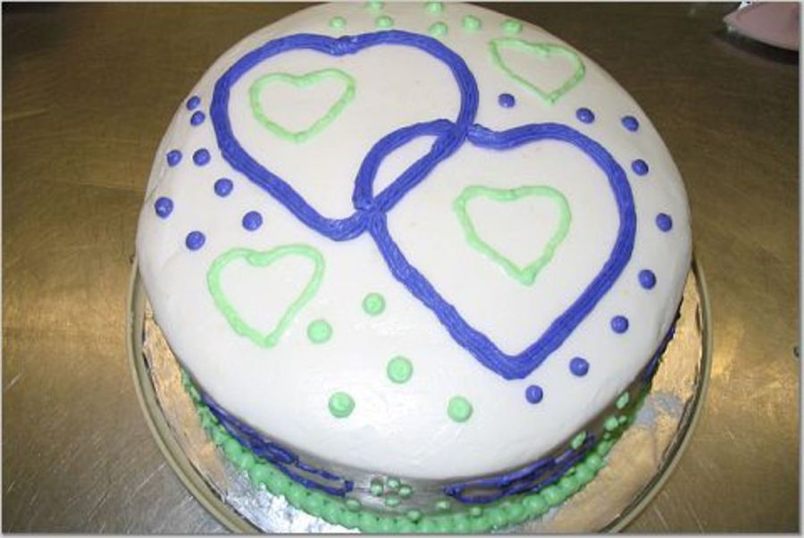 I am making my sister's wedding shower cake and since her wedding has the double heart theme, this cake was practice. I have since deciced to a do a heart shaped cake rather than heart designs.