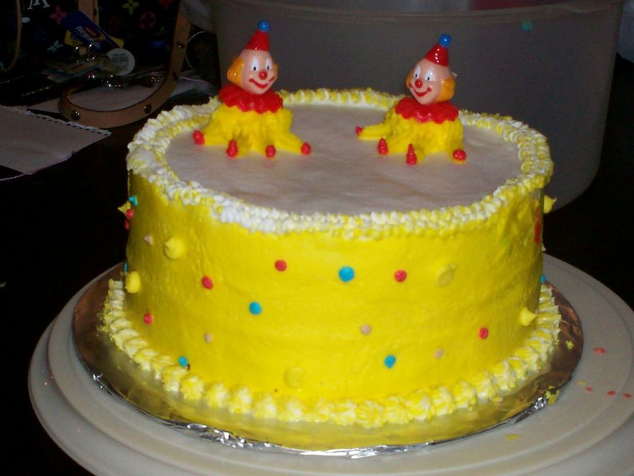 Ok,second go around with this cake and it got smooshed when it got stuck in my carrier:( Anyhow, my instructor said my clowns were too small, but looked good.