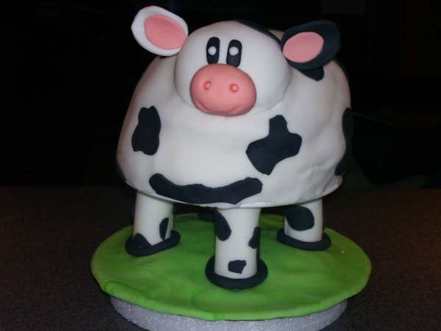 My first time at a cow cake, body and face is sculpted cake. Feet are cake columns wrapped in fondant.