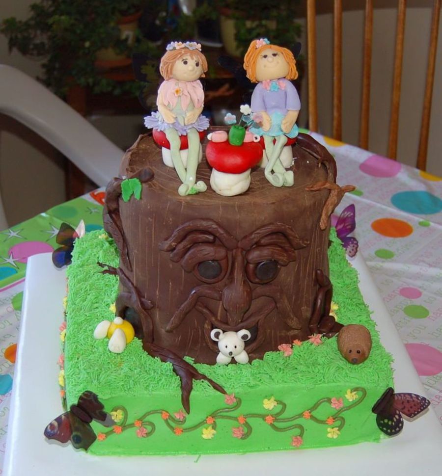 Made for daughters birthday. WASC and chocolate cakes with sugarshaks bc. Gumpaste figures and tree covered in chocolate clay. This was done very quickly as 2 of my children are sick so I'm not real happy with it. The fairies have wings that cant be seen in the pic and the back of the tree had a fairy door with a welcome mat.