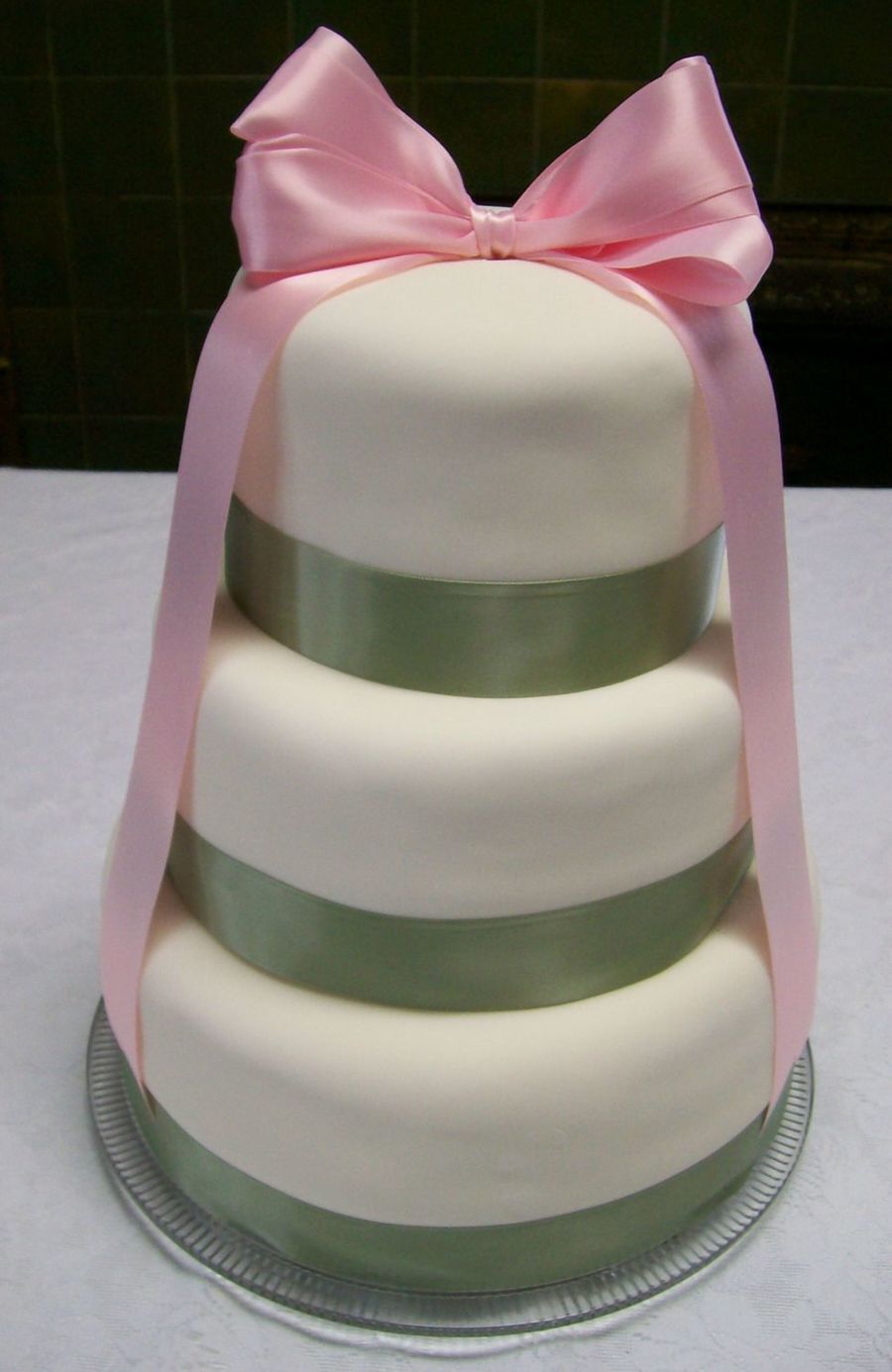 This cake is a 6", 8", and 10" round 3 tier cake covered in buttercream and fondant. Then I added some ribbon to match the birthday decorations.