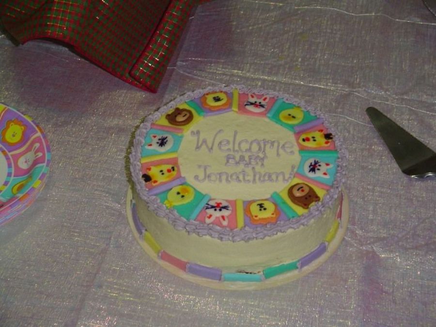 This is a baby shower cake meant to match the plates at the party. All buttercream with fondant accents.