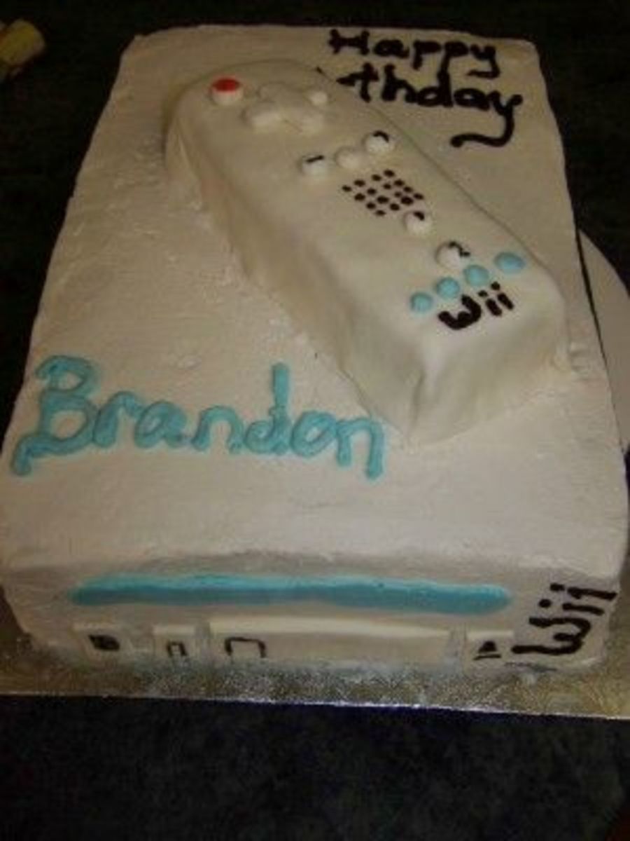 9x13" pan with a piece cut off for the controller. Controller covered in fondant and the system is covered on buttercream.