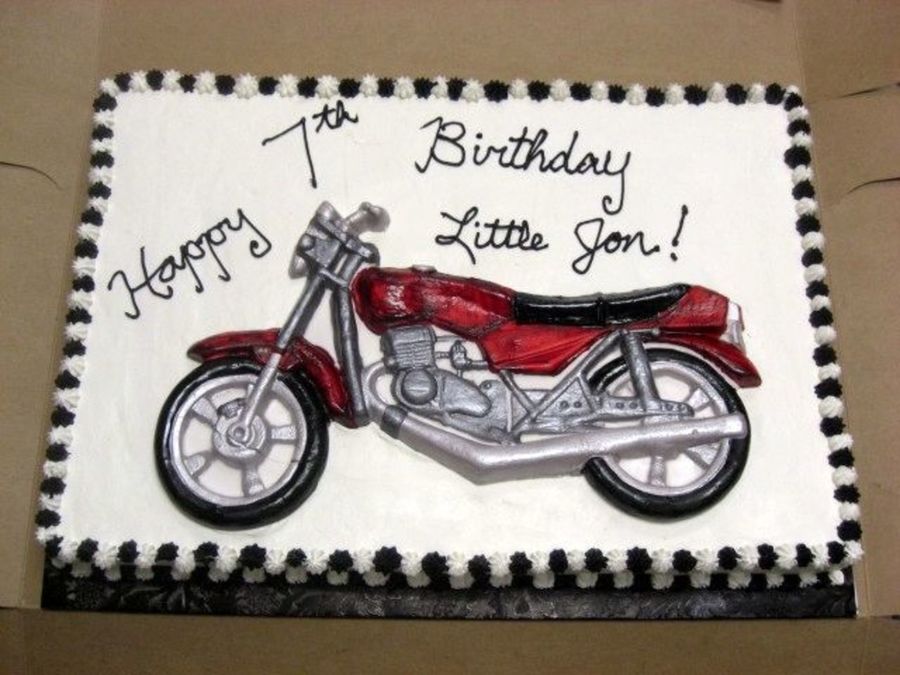 I used a mold and fondant to create the motorcycle. The cake is iced with whipped icing.