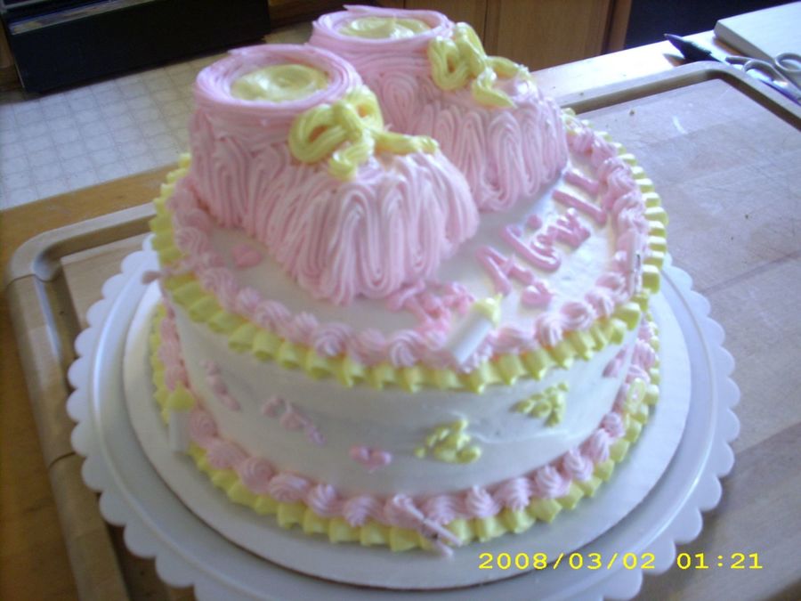 All BC except litle plastic bottles and such. Baby booties made with cupcakes and bc. First cake I have done out of my home...alot different from doing it at work but I think it turned out okay.