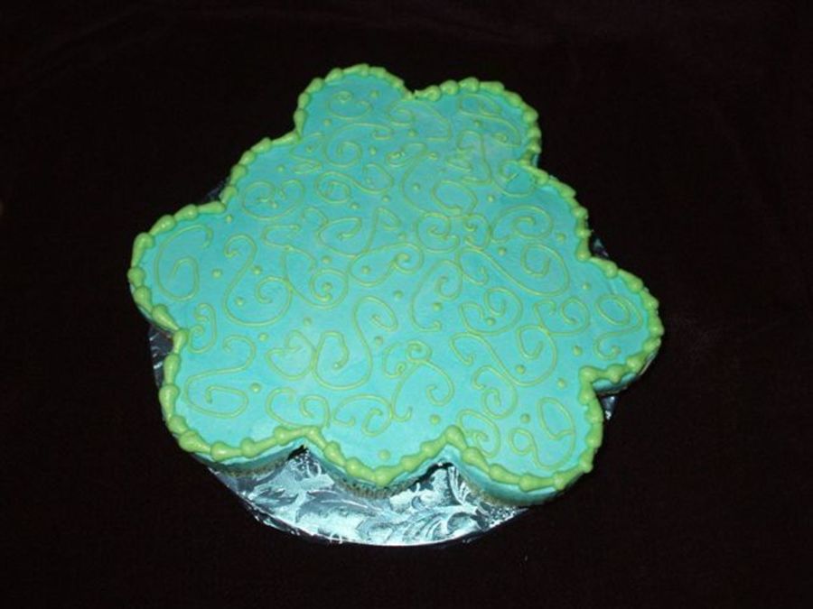 Had to do a cake for a co-worker's birthday. Originally, I was going to airbrush some kind of design on the top of a CCC iced all in white, but as i'm still new to airbrushing, I kind of goofed it up. So I scraped my goof up off the top, re-mixed the icing, which resulted in a pretty shade of green, and then re-colored the remaining white that I had to blue and here's the result! Cupcakes are vanilla cake/black cherry filling/vanilla buttercream. Scrollwork isn't perfect but i'm learning!