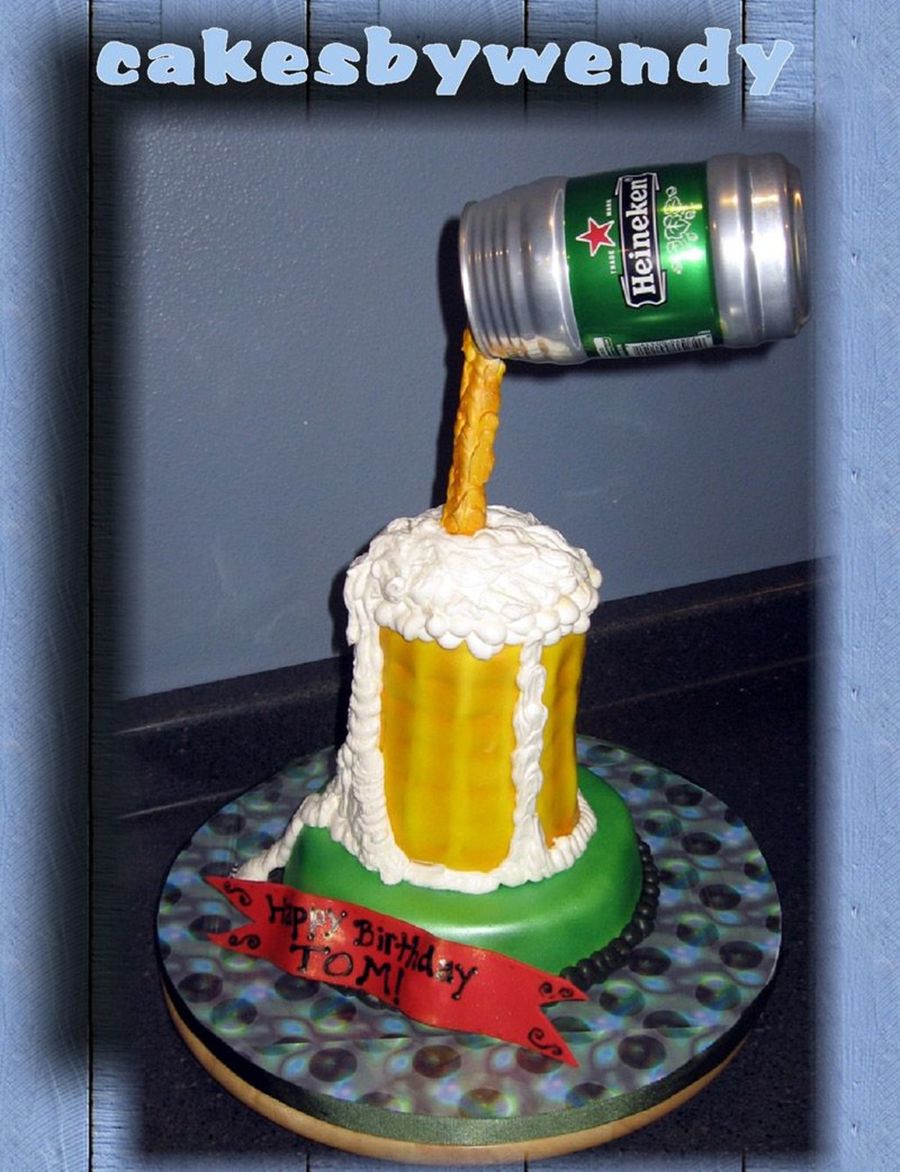 Got inspired by siris to try this one. Cherry chip cake and WBH bc. Dowel is holding the beer can up. Satin Ice covered, fondant banner. I love how it turned out...although it could have looked more realistic with blown sugar, I only know bc;-) Thanks for lookin'!!!