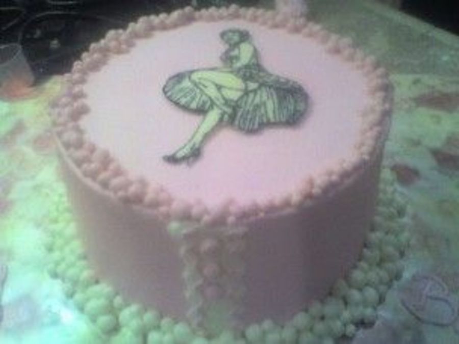 8" strawberry cake with vanilla filling, bc icing with fonfant accents and chocolate transfer Marilyn. The design was inspired by a cake done by aandsmommy. TFL!