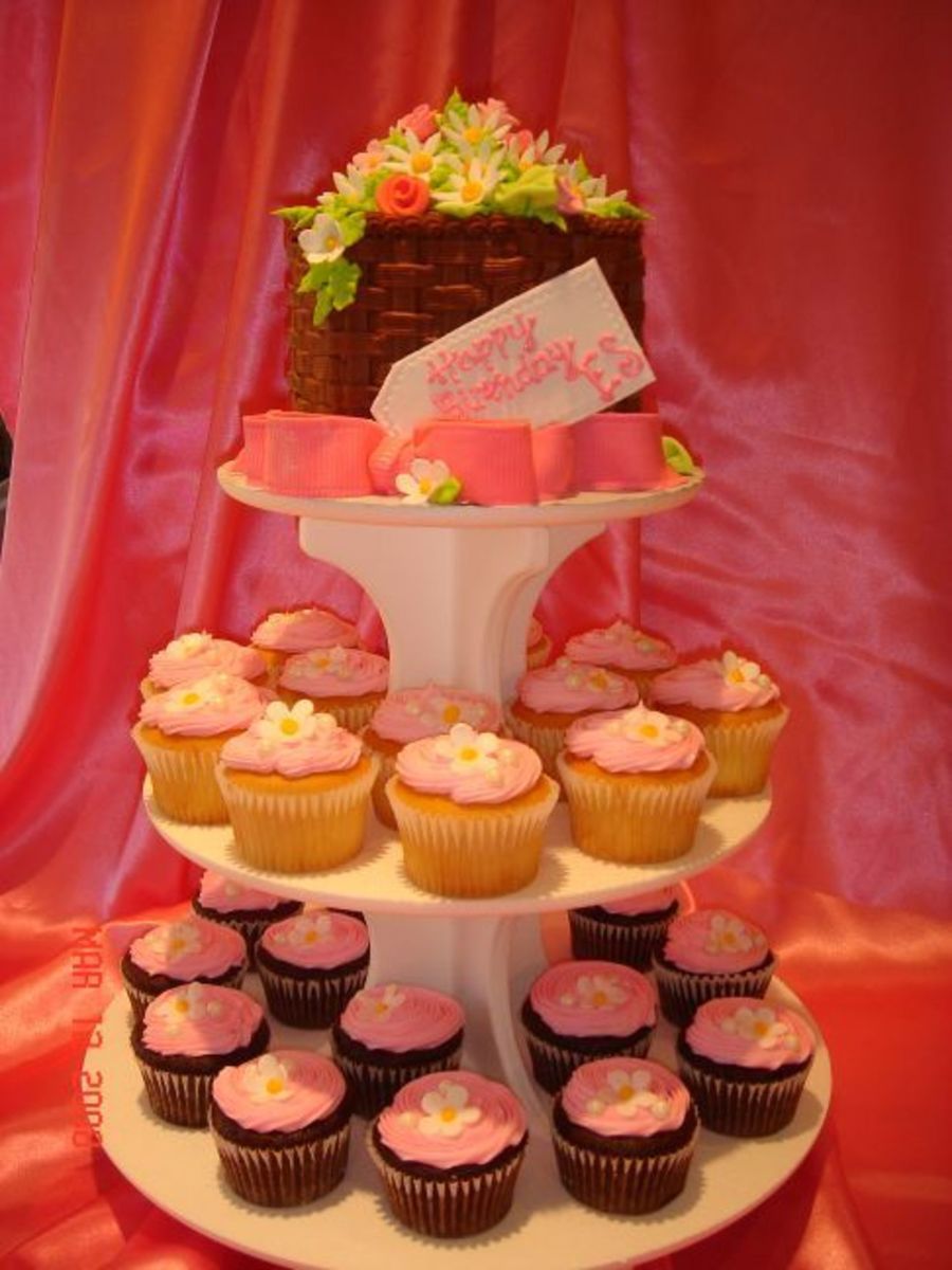 This was for my Mom's club. She wanted a basket of flowers on top and I was inspired by susgene's beautiful flower basket cake. Thanks susgene!